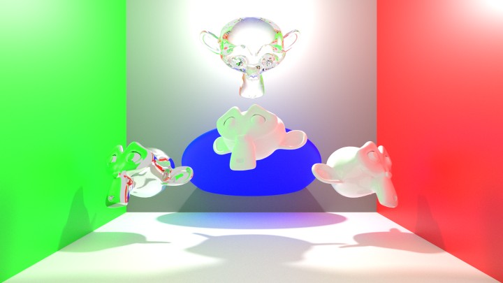 b. Rendu avec gestion des couleurs, dans l’espace de travail Filmic (réglage “Medium-Contrast”).