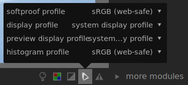 - histogram profile définit l’espace utilisé par l’histogramme et la pipette de Darktable.